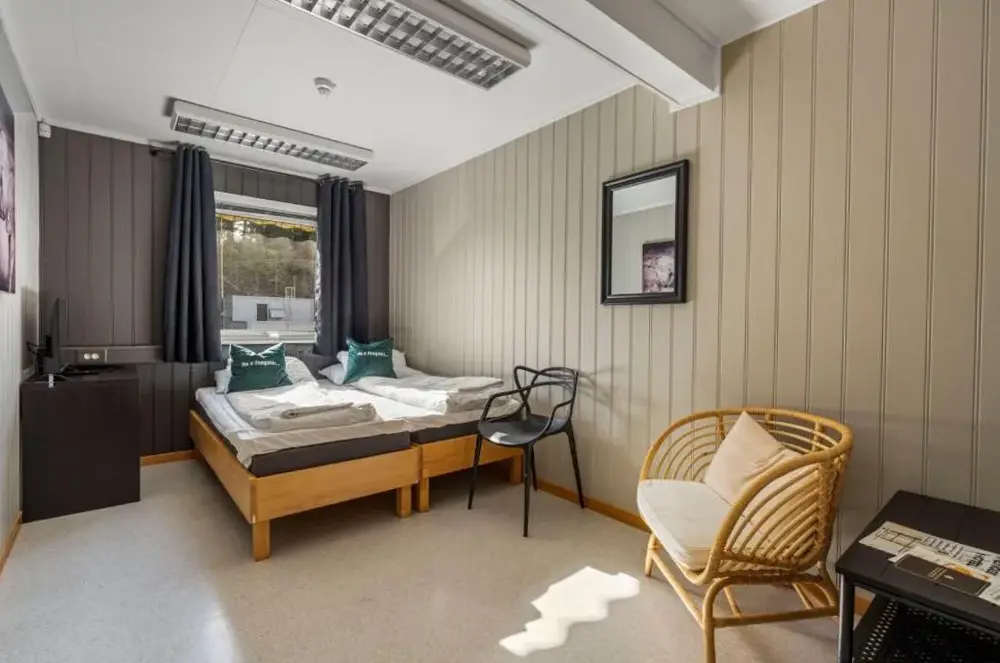 More information about Krøgeneslåven MicrotelGuesthouse with terrace offers comfortable accommodations in Arendal, Norway. Located at 6 Alvigveien, this guesthouse provides family rooms and non-smoking options. Guests can enjoy a fully equipped kitchen with ample utensils and modern facilities. Nearby attractions include Pronto pizza at 400 meters, Leif Ellingsen just 1.2 kilometers away, and Hove strand accessible within 6 kilometers.