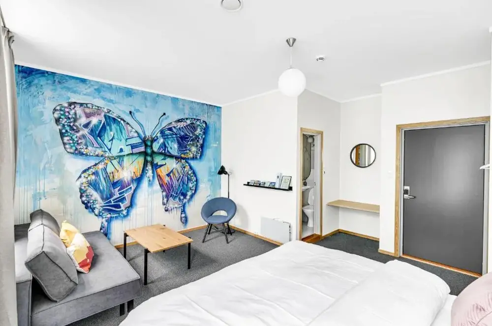More information about Fengselshotellet ASLoftsleilighet i Arendal sentrum offers a comfortable stay in central Arendal, Norway. Located at 23 Vestre gate, this property provides free parking for guests. The accommodations feature free WiFi, ensuring reliable internet access throughout the stay. Reviews highlight its cleanliness, coziness, and quiet environment, with many visitors appreciating the convenience of on-site parking.